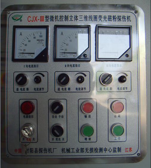 該機就是根據根據這個試驗原理設計制造的專用檢測設備。是我廠生產的低電壓、交流大電流三維線圈磁化器、機電一體化型固定臥式輸送式磁粉探傷設備,適用鐵路、航空、汽車、摩托車、內燃機等行業形狀不規則的大、中、小零件的磁粉探傷,可發現零件表面和近表面因鑄造、淬火、磨削、疲勞等原因形成的微小裂紋,以及夾渣等極細微缺陷。