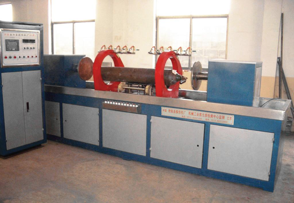 控制中心(人機界面觸摸屏操作系統(tǒng)、數(shù)字顯示) 一套 主機(包括:周、縱向變壓器、縱向磁化器、周向夾緊磁化機構(gòu)、絲桿螺母極間距調(diào)整機構(gòu)等) 一套 氣動夾緊機構(gòu) 一套 托架旋轉(zhuǎn)機構(gòu) 一套 線圈伸出機構(gòu) 二套 磁懸液噴灑回收系統(tǒng) 一套 全封閉暗室系統(tǒng) 一套 LED紫外燈系統(tǒng) 一套 二、探傷工件:鋼瓶,φ400mm,長度,1800mm。三、設(shè)備能力:探傷節(jié)拍:15--35秒/件,觀察時間除外。四、本機設(shè)計制定標(biāo)準(zhǔn):1、滿足需方現(xiàn)場和實際探傷工藝要求。2、中華人民共和國磁粉探傷機《GB3721-83》標(biāo)準(zhǔn),機械工業(yè)部行業(yè)磁粉探傷機《JB/T8290-2011》標(biāo)準(zhǔn),GB/T 15822.3-2005《無損檢測 磁粉檢測 第3部份:設(shè)備》標(biāo)準(zhǔn),CB819-75《柴油機另件磁粉探傷》標(biāo)準(zhǔn),行業(yè)《HB/Z72-98》標(biāo)準(zhǔn)。3、ISO-9001質(zhì)量體系認證文件。五、主要技術(shù)指標(biāo):周向磁化電流AC:0—6000A(有效值)連續(xù)可調(diào),帶斷電相位控制(無漏檢)。縱向磁化磁勢AC:0—18000AT(有效值)連續(xù)可調(diào),帶斷電相控制(無漏檢)。電極間距:0—2000mm。磁化原理:通電、線圈法。磁化方式:周向磁化、縱向磁化、復(fù)合磁化三種可靈活選用。使用環(huán)境:—10℃—+40℃,相對濕度≤80%。貯存環(huán)境:溫度—20℃—60℃,相對濕度≤70%。無腐蝕性氣體粉塵和強力高頻電磁污染。紫外線強度:距工件380mm處紫外線強度不少于4000μW/cm2。靈敏度測試:按中華人民共和國機械行業(yè)標(biāo)準(zhǔn)JB/T6065—92《磁粉探傷用標(biāo)準(zhǔn)試片》規(guī)定,以標(biāo)準(zhǔn)2號A型試片測試,顯示清晰。電源:三相四線,380V±20%,50HZ,約200A。檢查面:工件全部表面的裂紋等缺陷。退磁:AC18000—0(有效值)衰減式自動退磁。剩磁:Br≤0.2mT。工件旋轉(zhuǎn)觀察速度:4-6rpm。磁化線圈:內(nèi)徑450mm。線圈移動方式氣缸自動伸出。氣動夾緊:夾緊行程0-100mm。線圈伸出氣缸行程0—350mm.氣源氣壓: 0.4—0.8MP。磁化電源柜尺寸:620*500*1750,夾持裝置尺寸:3200*800*1400(不包括暗室)設(shè)備重:2T六、運行程序:手動和自動二種。自動程序為:上料-夾緊(磁化線圈前進)-噴液-磁化-(磁化線圈縮回)-轉(zhuǎn)動觀察(磁化線圈前進)-退磁-松夾 -下料,整個過程均用小型工業(yè)PC控制。自動程序可連續(xù)進行。